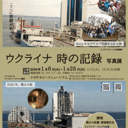 浅野さんは「被爆地長崎でウクライナの平和を祈る展示を開くのは意義がある」と強調。27日午後3時から、広島と長崎で二重被爆した故山口彊(つとむ)さんの孫で被爆3世の原田小鈴さん(49)と、アートや平和について語る。無料。定員約20人。同ミュージアム(電095-818-4247)。』(佐藤大樹)